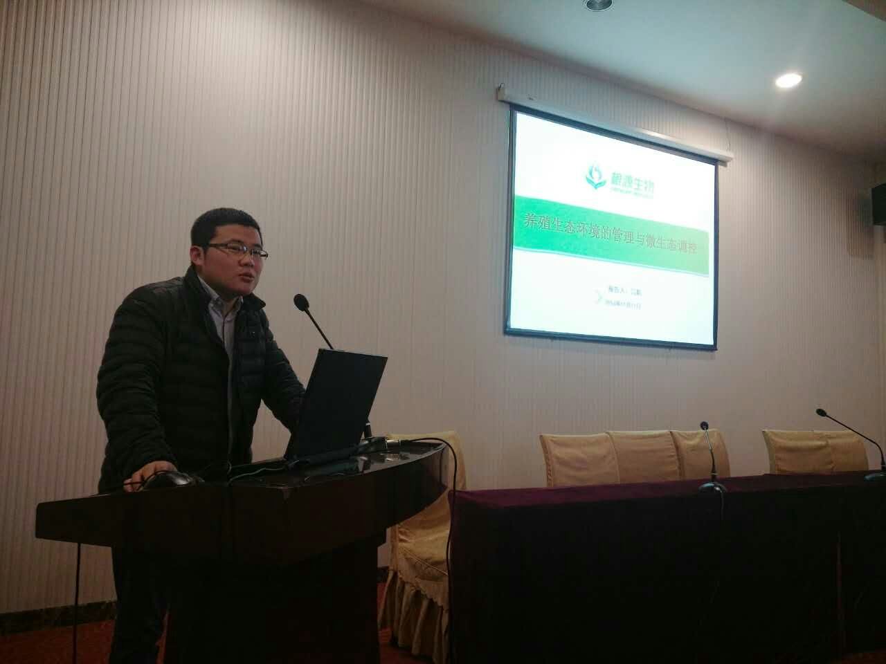 根源生物湖北區經理李家文代表根源生物做出的承諾,根源生物會盡全力的支持大家,讓大家少走彎路,從養殖中收益。
